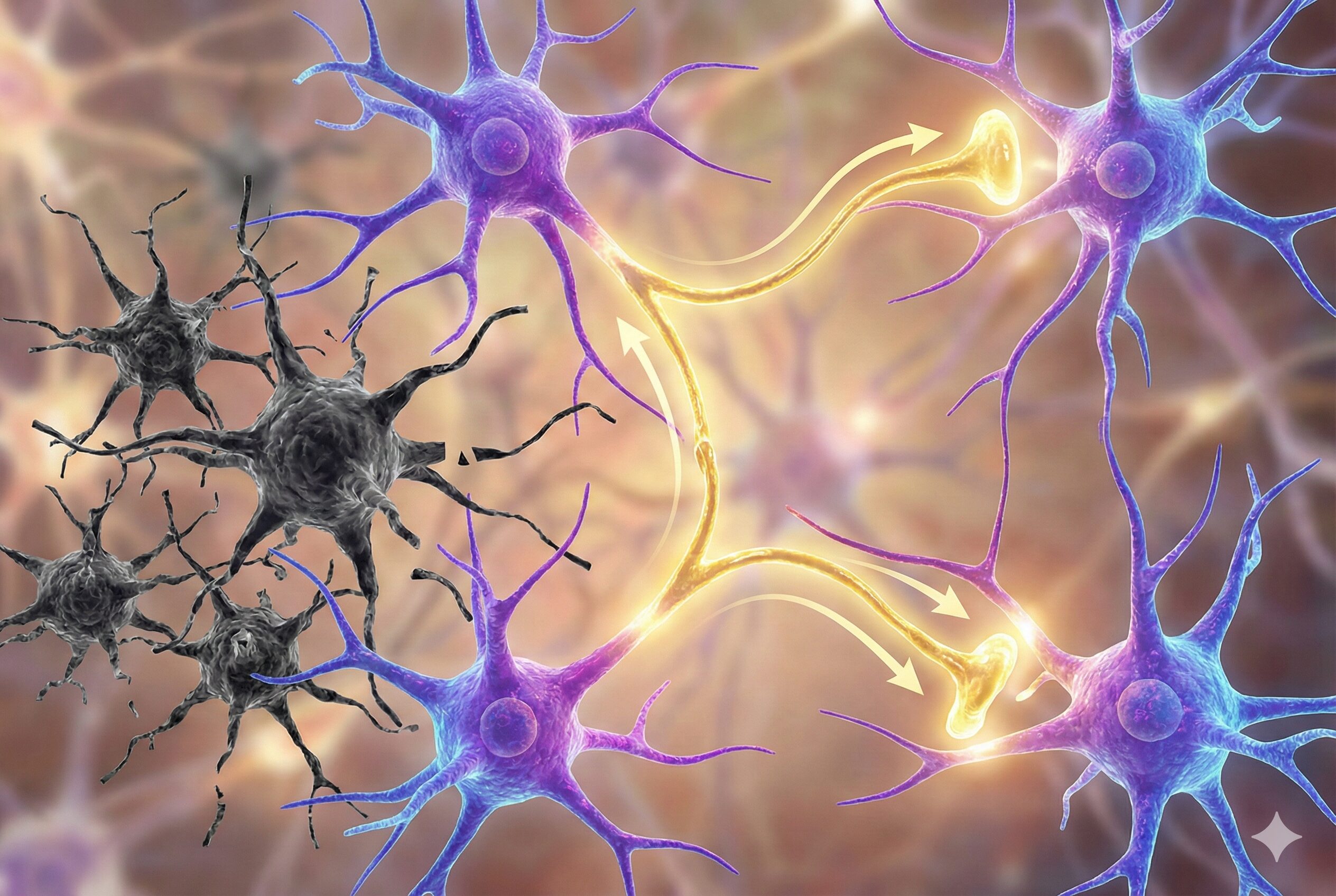 近年の研究では、脳の神経が完全に失われても、一部の機能を別の神経が補う可能性があることが明らかになっています。